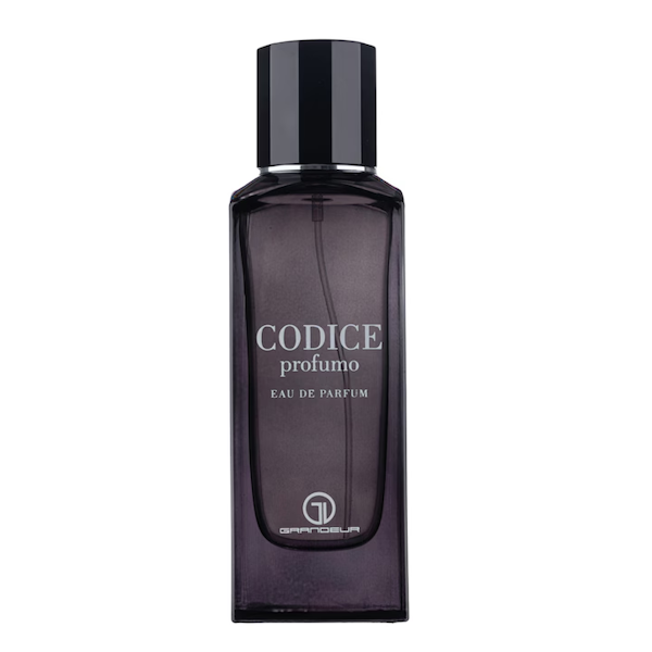 El perfume Grandeur Codice Profumo para hombres tiene notas de bergamota, limón, mandarina, jazmín, lavanda, nuez moscada, cedro, pachulí y ámbar. Notas de salida Bergamota, Limón, Mandarina. Notas de corazón Jazmín, Lavanda, Nuez moscada. Notas de base Cedro, Pachulí, Ámbar.
