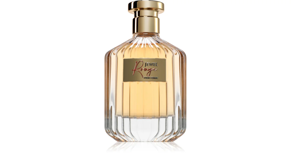 El perfume Jewel Rouge de Grandeur Elite es una fragancia de la familia olfativa ámbar floral para mujeres. Notas de salida: Azafrán y jazmín. Notas de corazón: Ámbar y ámbar gris. Notas de fondo: Resina de abeto y cedro.