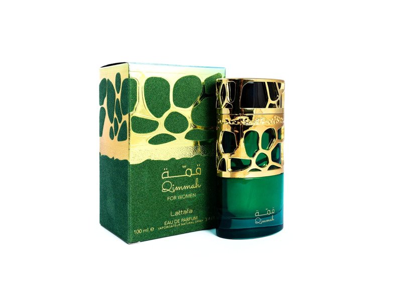 Qimmah for Women de Lattafa Perfumes; Es una fragancia de la familia olfativa para Mujeres. Las Notas de Salida son almendra y café; las Notas de Corazón son nardos, jazmín y haba tonka; las Notas de Fondo son vainilla, cacao y sándalo.